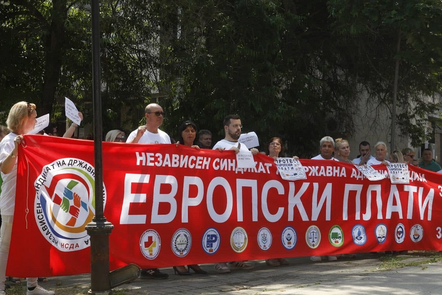 Независниот синдикат на државната администрација (НСДА) и Независен синдикат на судска служба, кој функционира во негов состав, со протест пред Основниот кривичен суд во Скопје денеска изрази незадоволство поради ниските плати и недобивање додатоци на плата.