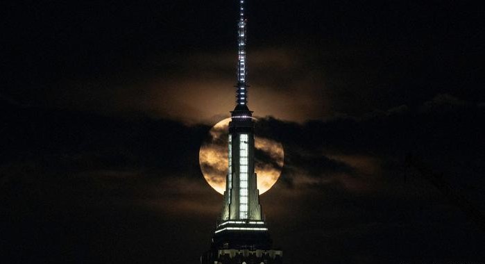 „Ноќните птици“ односно љубителите на ноќните забави во американската метропола беа наградени со прекрасна глетка. Тие можеа над облакодерите на Њујорк да ја видат типичната за јули Супермесечина. Станува збор за наголемата полна Месечина на годината, со оглед дека месечината деновиве е особено блиску до Земјата. (ДВ)