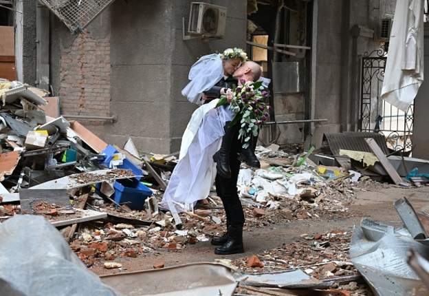 Вестите кои дојдоа од Украина во последните денови беа многу мрачни. Затоа, приказната за еден украински пар кој ја прослави својата венчавка среде урнатините и остатоците од вториот по големина град во земјата делува опотимистички.