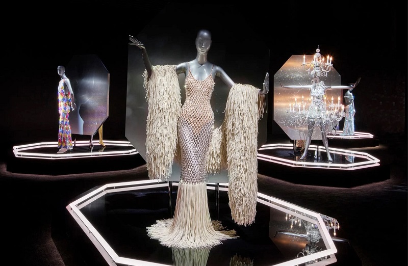 На изложбата се вклучени вкупно 41 облека, вклучувајќи седум филмски костими, пет модни изгледи, осум изгледи по нарачка од Сваровски и 21 ансамбл носени од поп-икони. Изгледите ги носеле Мадона, Хари Стајлс, Грејс Џонс, Џозефин Бејкер, Бијонсе, Тина Тарнер, Кејти Пери, Марлен Дитрих, Грета Гарбо и Кери Малиган, додека меѓу претставените филмови се Вљубениот Шекспир, Големиот Гетсби, Кралицата Кристина, Ангел и Фантомот од операта.