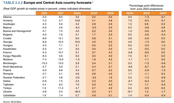 Во извештајот, Светска банка ги намали прогнозите за раст за 2023 година на ниво кое е на работ на рецесија за многу земји, наведувајќи го влијанието на засилените зголемувања на каматните стапки, продолжувањето на војната во Украина и колапсот на главните мотори на за раст на глобалната економија.