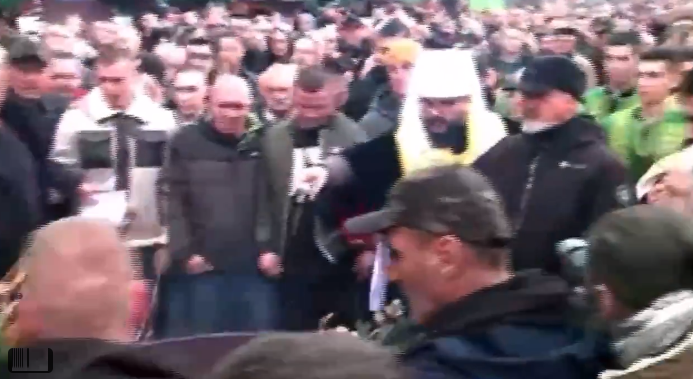 Откако на плоштадот се појавија митрополитот на ЦПЦ Михаило и неодамнешниот владика на истата црква Борис, кои се во отворен конфликт, дојде до тензија, туркање и вербални провокации меѓу нивните поддржувачи, пренесе Хина.