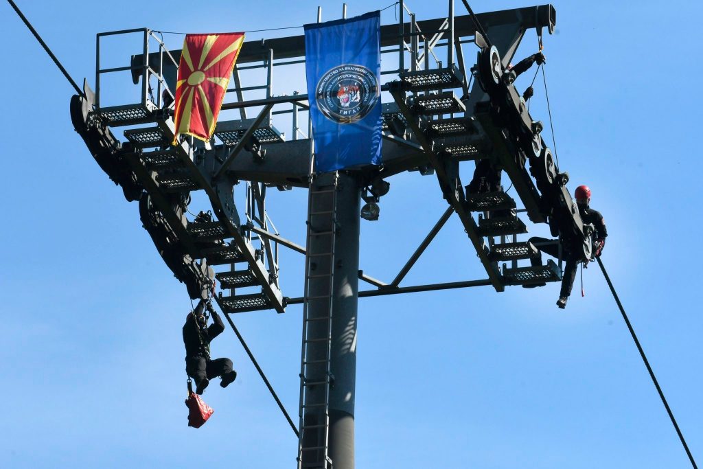 Денеска на жичницата „Милениумски крст“ на Водно се реализираше показна вежба на тема „Евакуација од жичница“, во која учествуваа тимови на Специјалната единица за антитерористичка единица – Тигар на Министерството за внатрешни работи.