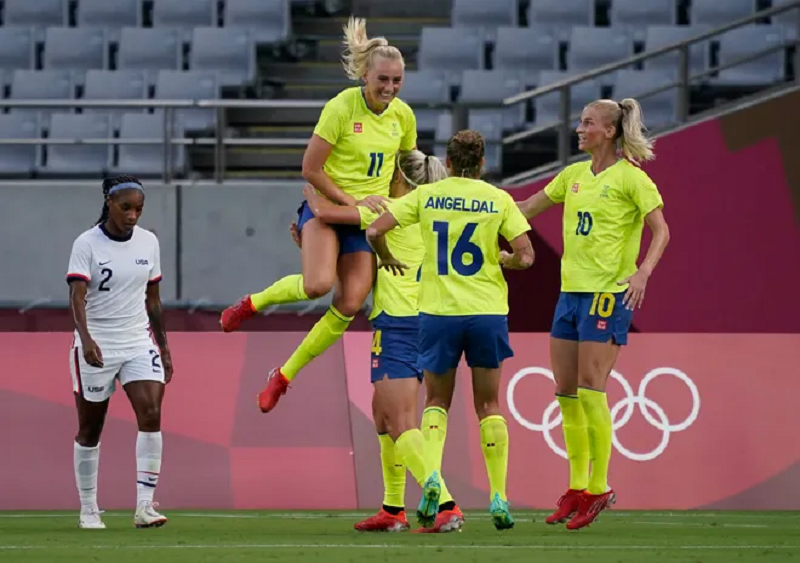 Шведска стави крај на серијата од 44 натпревари без пораз на САД, совладувајќи го денеска актуелниот светски првак со 3:0 во премиерниот натпревар од групата Г на женскиот турнир во фудбал на Олимписките игри во Токио.