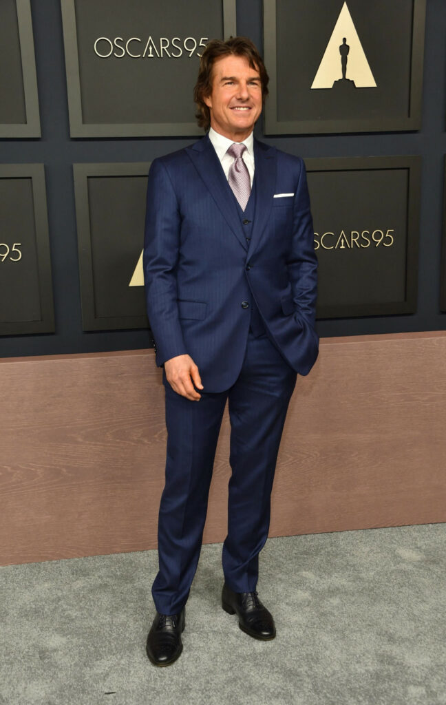 За Том Круз, чиј „Top Gun: Maverick“ беше номиниран за најдобар филм, тоа беше прво појавување на црвениот тепих оваа година. Во последно време ретко го гледаме на јавни настани, а се чини дека актерот не можеше да направи ниту еден чекор, а да не го спречи некој од неговите колеги од индустријата. Тој весело ги поздравуваше новинарите, им позираше на фотографите и разговараше со Стивен Спилберг, Пол Мескал и Даниел Кван.