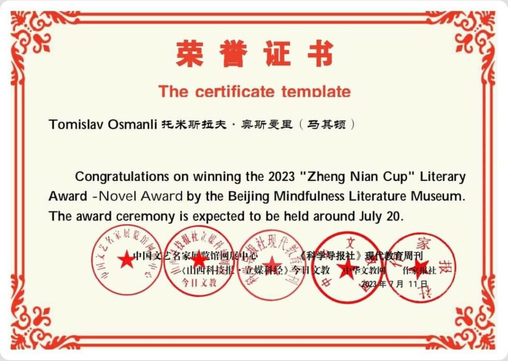 Томислав Османли добитник на кинеска книжевна награда