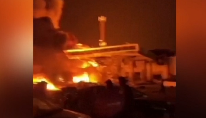 На видео објавено на Интернет се гледа еднокатна зграда во пламен, јавија британските медиуми.