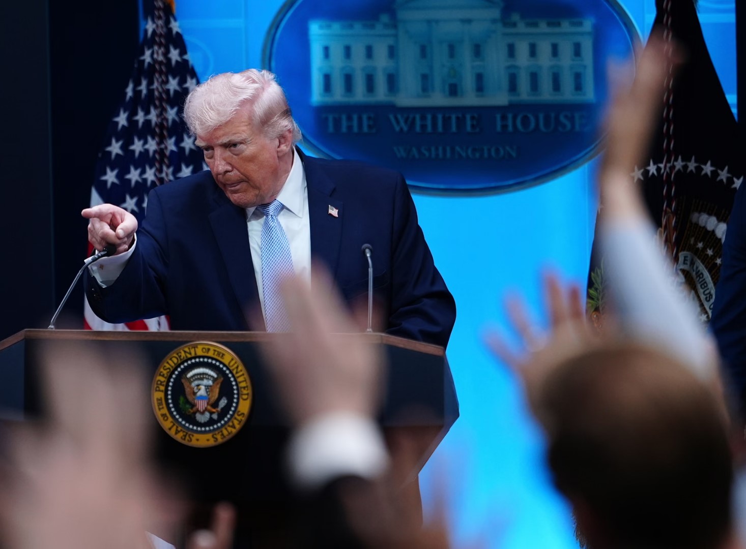 Зборувајќи со новинарите од прес-салата на Белата куќа, Трамп ги отфрли загриженостите дека таргетирањето на електричната мрежа и цивилната инфраструктура на Иран би ги казнило обичните Иранци, а не режимот, велејќи без докази дека американските разузнавачки служби имаат пресретнати цивили во близина на активни места за бомбардирање, повикувајќи ги американските сили да продолжат.