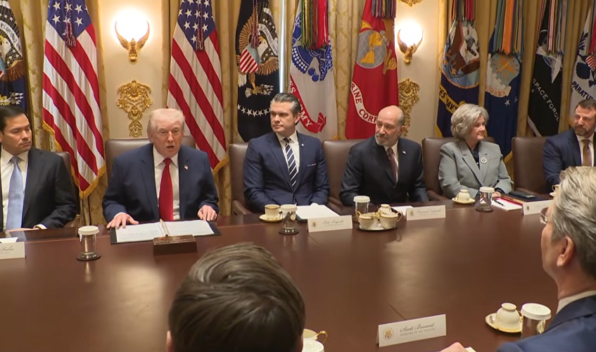 Говорејќи за иранскиот напад со балистички ракети врз британско-американската воена база Диего Гарсија на островите Чагос во Индискиот Океан, Трамп на седницата на кабинетот рече дека Техеран на таа база истрелал „една ракета на 4.000 километри“, пренесува Скај Њуз.