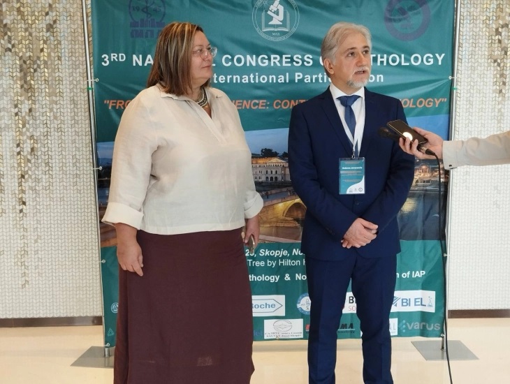 -На третиот по ред национален конгрес за патологија со интернационално учество имаме повеќе од 160 учесници. Тука учествуваат сите патолози од земјава, потоа патолози од регионот, како и предавачи од САД, Канада, Шпанија, Австрија, како истакнати експерти од нивната област. Со овој настан ќе се актуелизира патологијата и ќе овозможи унапредување на оваа дијагностичка област од медицината која што реално е круцијална за развој на останатите гранки во медицината и за она што сите ние се бориме, а тоа е развој на персонизирана медицина. На конференцијата застапени се теми од областа на меко ткивни тумори, уропатологија, гинеколошка и дерматопатологија, истакна Јовановиќ.