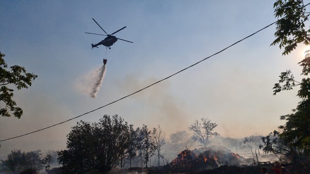 Кај селото Орел пожарот веројатно изби како последица на искрења од инсталација за пренос на струја.