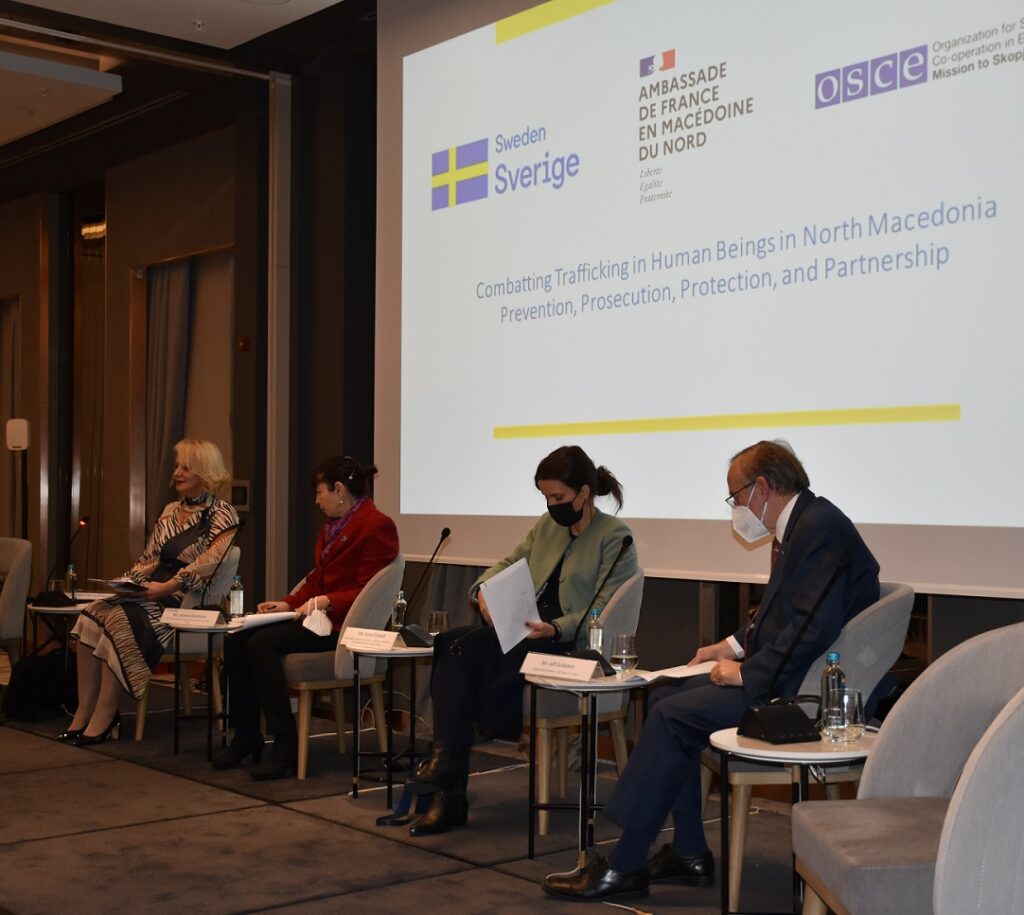 Амбасадорката за борба против трговијата со луѓе во шведското Министерство за надворешни работи, Ана Екстед, во ова прилика истакна дека податоците на ЕУ и ОН покажуваат дека не се прави доволно и дека најголем дел од експлоатираните луѓе за сексуални цели се жени, а преголем дел од нив се деца, кои се експлоатираат за сексуални цели, но исто така и за работа. Амбасадорот за борба против транснационалниот криминал и закани во француското Министерство за Европа и надворешни работи, Жан-Клод Бруне, преку видео обраќање, сподели неколку негови искуства во борбата против трговијата со луѓе и наведе дека таа е една од најсериозните закани за човековите права, потенцирајќи дека приоритет на француските власти е да се борат против ова злоупотреба и феномен. На светско ниво, според Бруне, 2,5 милиони луѓе се предмет на експлоатација од различни криминални мрежи, што создаваат профит од 50 милијарди евра годишно.