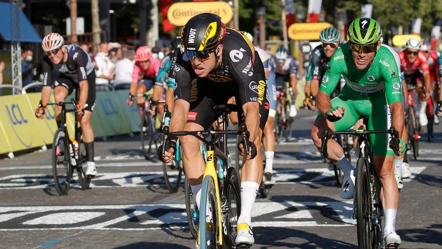 Неверојатниот Белгиец Вут ван Арт за само 24 часа направи два големи подвига на Тур де Франс – вчера го победи во хронометар Тадеј Погачар, а денеска во последната етапа на Шанзелизе во Париз му ги помати плановите на извонредниот спринтер, Марк Кавендиш од Британија. Кавендиш се врати годинава на Тур де Франс и победи во четири етапи со што се изедначи со легендарниот Еди Меркс со 34 етапни триумфи. Но во Париз Кавендиш стигна само трет и не успеа да избие сам на врвот. Сепак, тој ја задржа зелената маичка за најдобар спринтер.