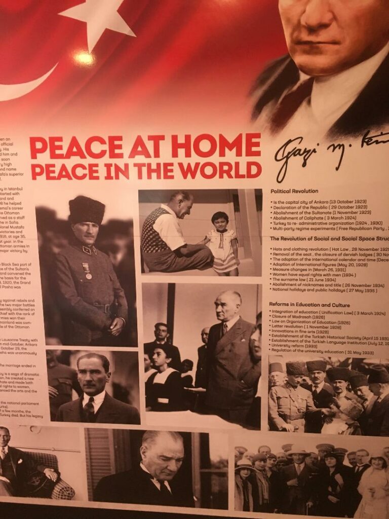 Во повеќето хотели, ѕидовите ги красат плочи со ликот и мудрите мисли на Кемал Ататурк.