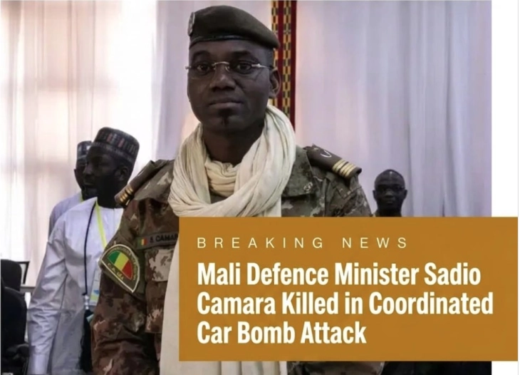 Министерот за одбрана на Мали, Садио Камара, е убиен во напад извршен од групата Џамаат Нусрат ал-Ислам вал-Муслимин (JNIM), поврзана со Ал Каеда, врз неговата резиденција во воената база Кати во близина на главниот град Бамако, објави француското радио РФИ.