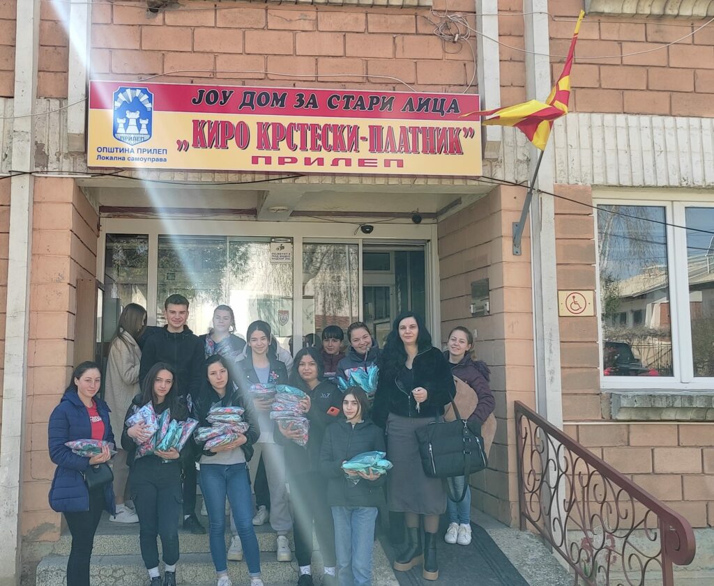 Учениците од СОУ „Ѓорче Петров“ од Прилеп денеска донираа 120 навлаки за перници, кои сами ги изработиле, во рамки на наставата, на штитениците од Домот за стари лица „Киро Крстески – Платник“ во нивниот град.