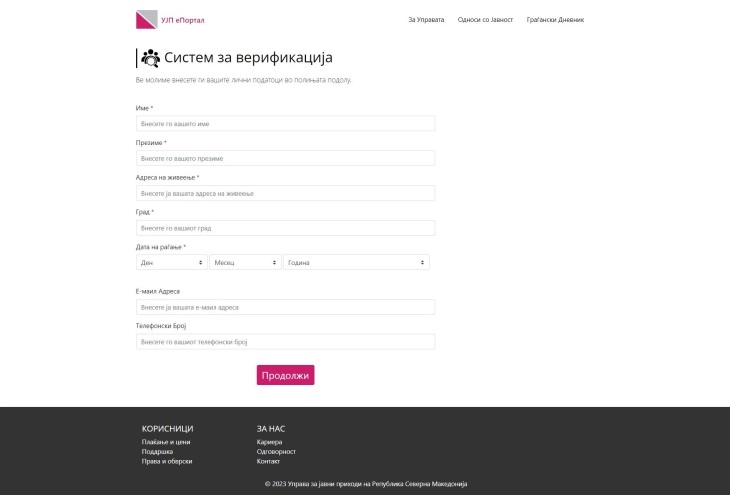 Оттаму потенцираат дека веб-страница е лажна и не e во сопственост на Управата за јавни приходи.