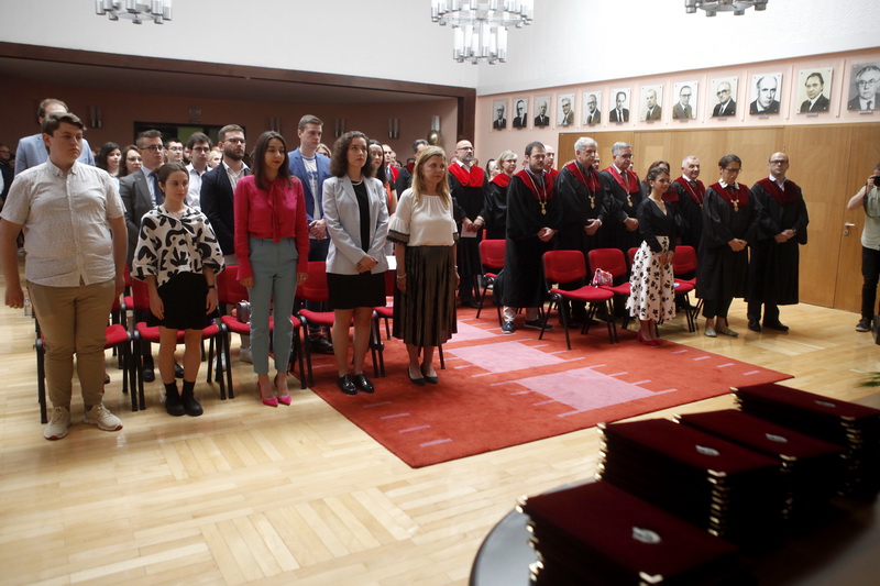 Заблагодарувајќи се на професорите, нивните факултети и Ректоратот, рече дека не само што им изразуваат чест, туку и ги поттикнуваат да вложуваат уште повеќе сили во остварувањето на нивните амбиции.