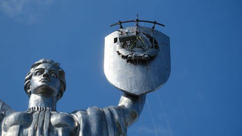 Украина го тргна советскиот грб од најспејктакуларниот споменик во Киев „Мајка татковина“.
