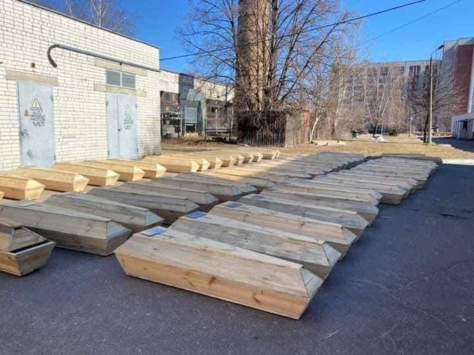 „Окупаторите се обидуваат да создадат лажни ’докази‘ за да ја обвинат Украина за сè. На подрачјето на аеродромот Антонов во Хостомел, забележани се руски ладилници за автомобили, кои ги собираат телата на загинатите украински бранители“, се вели во соопштението.
