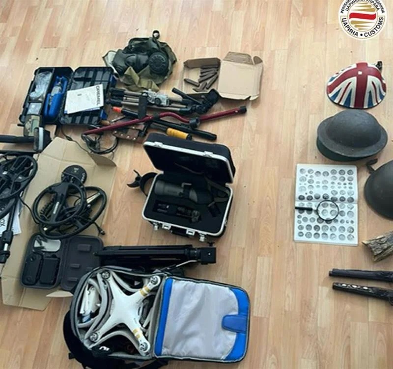 Опрема за пронаоѓање злато и други метали, но и војнички шлемови и стари револвери кубури – антиквитети, се запленети на влез на граничниот премин „Табановце“ од страна на царински службеници при спроведена детална контрола на возило со украински регистарски таблички, управувано од украински државјанин.