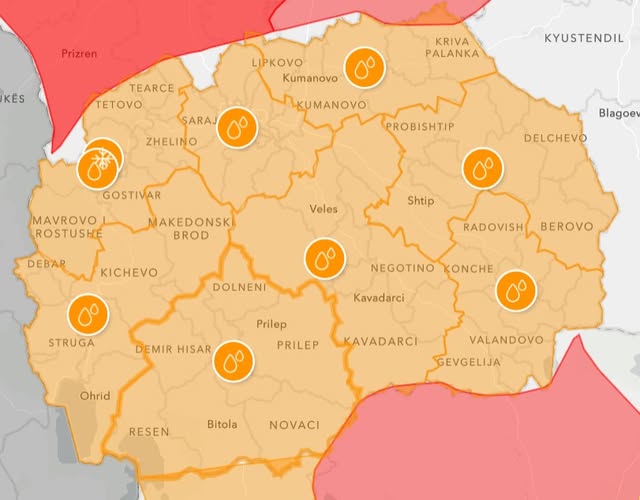 Објавија и метео аларм, во кој се вели дека утре (02.10.2025), ќе има обилни врнежи од дожд, на повеќе места над 30 l/m², а локално и над 50 l/m².