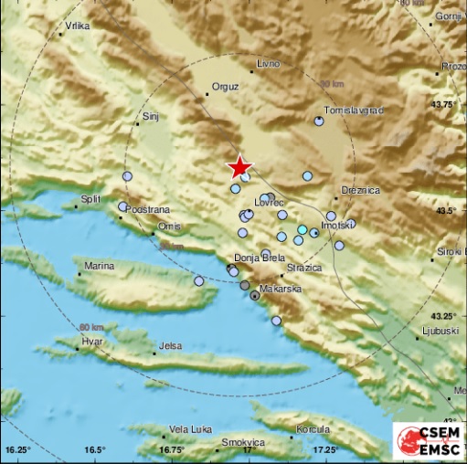 Епицентарот на потресот бил на 14 километри јужно од местото Подхум во Босна и Херцеговина и 44 километри североисточно од Сплит.