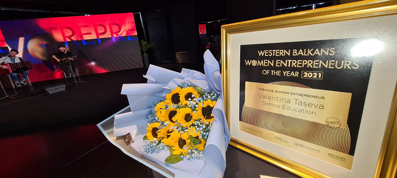 Меѓу лауреатите беше и Валентина Тасева, сопственичка на фирмата „Семос Едукејшн“ која беше избрана за „креативна претприемачка“. Другите наградени претприемачки се Аида Зубевиќ, сопственичка на „Фаведа“ од БиХ, Драгана Чалија, сопственчка на „Сент Ди“ од Србија, Пакизе Пајазитај, сопственичка на „Крафт бизнис“ од Црна Гора и Арта Шеху Заими, сопственичка на „Лабокс“ од Косово.