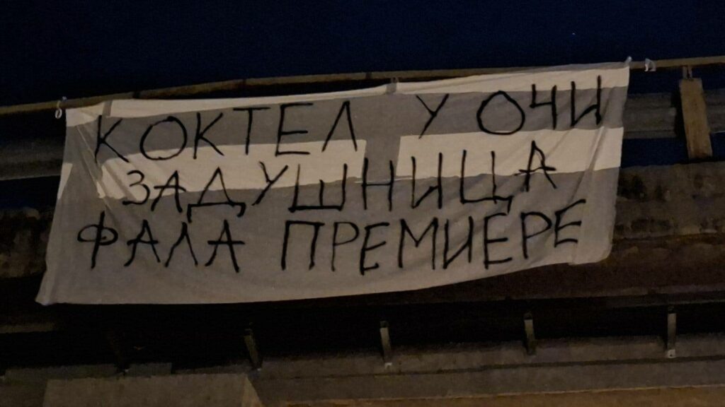 Мицкоски во Кочани го пречека транспарент – „Коктел уочи Задушница. Фала премиере“.