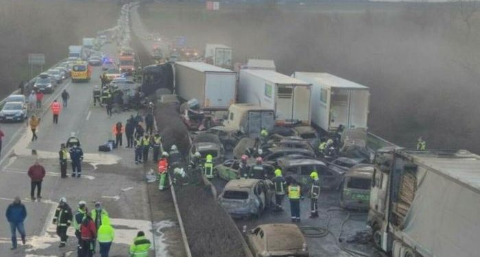 Во верижниот судар учествувале 42 возила, од кои 37 се автомобили и пет камиони.