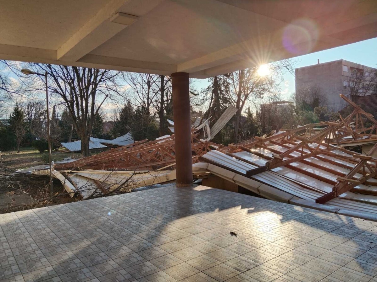 Преку Единствениот број за итни повици 112 е примена пријава дека поради силен ветер летнала лимената конструкција од кровот на СОУ „Јосиф Јосифовски“ во Гевгелија.