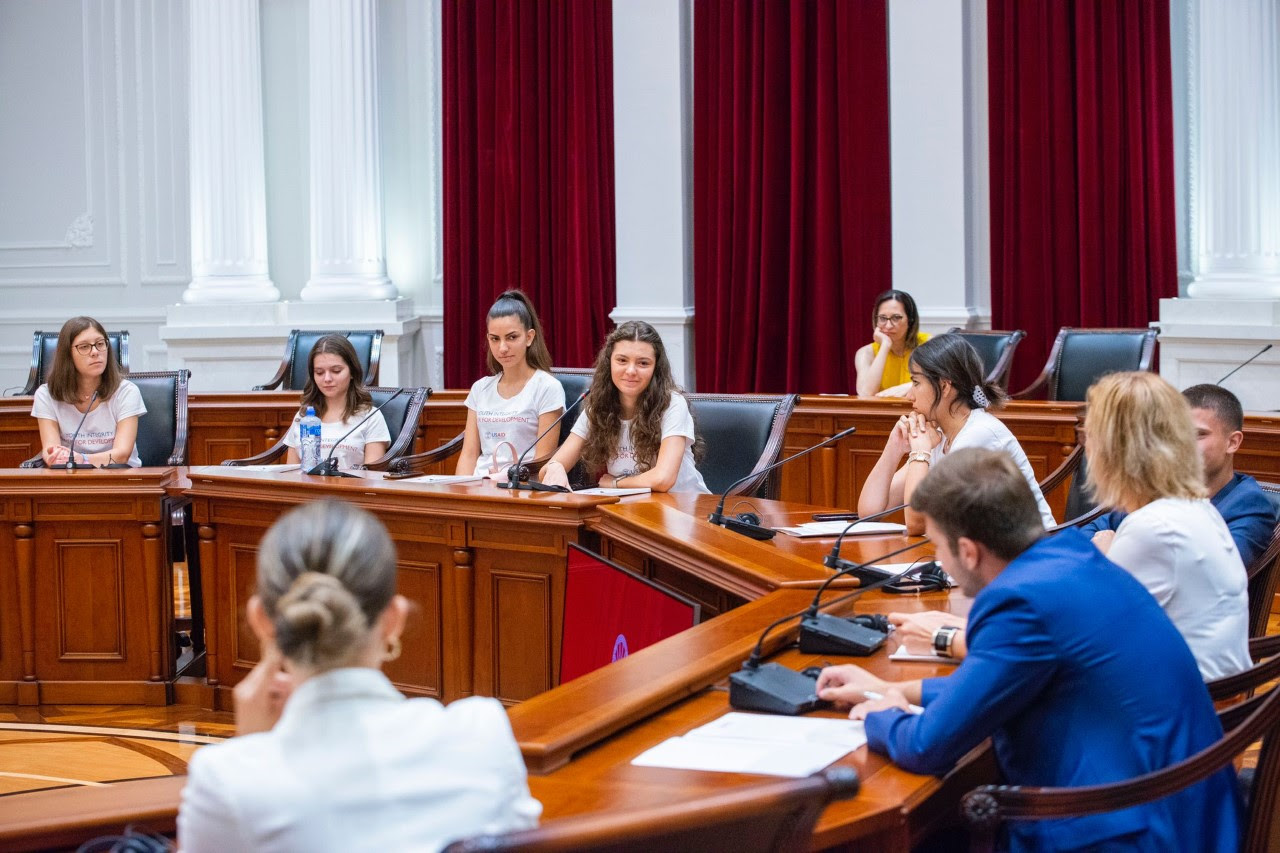 Вицепремиерката Грковска и средношколците симулираа владина седница на која учениците во улога на членови на Владата разговараа за најгорливите прашања во државата, но истовремено нудеа и решенија.