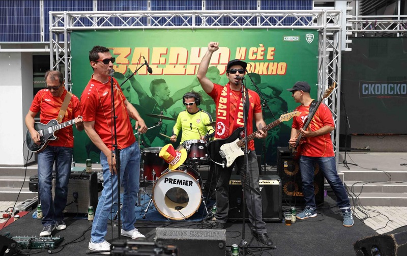СКОПСКО, како докажан пријател на спортот и нераскинлив дел од сите важни моменти од нашето живеење, пред и за време на првенството, интензивно се подготвува за креирање на вистинска навивачка атмосфера и поддршка на нашите фудбалери во нивниот историски настап на едно големо фудбалско натпреварување. За таа цел, во соработка со ФФМ, ќе биде реализирана кампања под мотото „Заедно и сѐ е можно“, во која составен дел е навивачката химна „Одиме на Европско“. Во создавањето и изведбата на навивачката химна, за која е креиран и видео спот, учествуваат домашни музички ѕвезди обединети во бендот „Вис Рисови“.