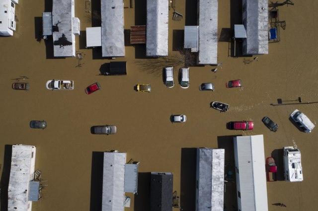 Силните дождови и порастот на водостојот поради топењето на снегот предизвикаа големи поплави во Кентаки, САД.