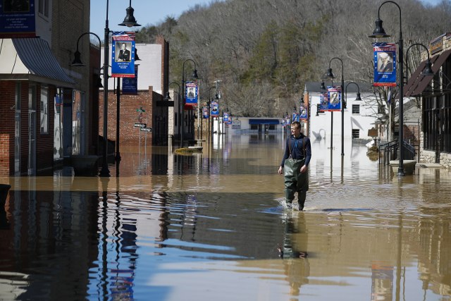 Силните дождови и порастот на водостојот поради топењето на снегот предизвикаа големи поплави во Кентаки, САД.
