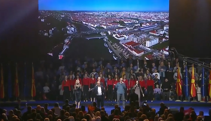 Трибината на СДСМ „Силно и одлучно кон иднината“ што се одржа вечерва во Скопје, финишираше со познатиот евровизиски хит на Тото Кутуњо „Инсиеме“ („Заедно“), кој беше преработен и отпеан од повеќемина македонски музичари. На бината во салата „Борист Трајковски“, вечерва на музичарите им се придружија и премиерот и лидер на СДСМ, Ковачевски, како и поќемина учесници на партиската трибина.