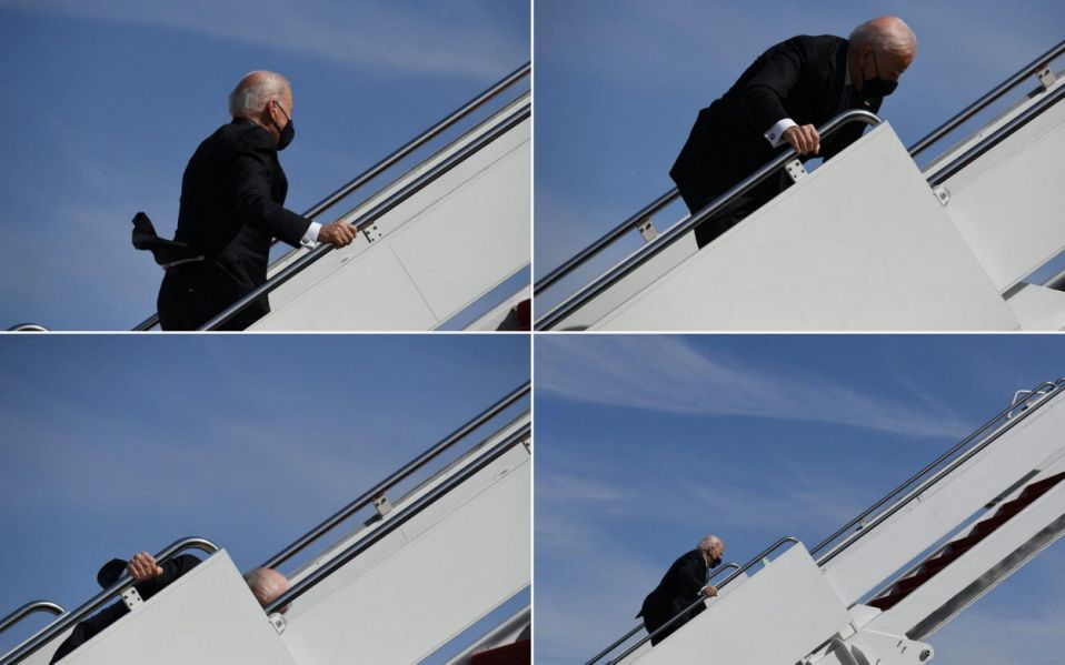 Претседателот на САД, Џо Бајден се сопна и падна на скалите на претседателскиот авион во петокот.