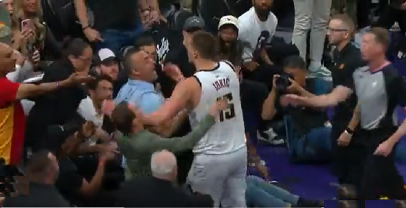 Но, по средбата најмногу се зборува за конфликтот меѓу Јокиќ и сопственикот на „Феникс“ кој го извлече подебелиот крај. Се се случи во втората четвртина, кога српскиот кошаркар тргна по топката која заврши во публиката, каде што беше и американскиот милијардер Мата Ишибија.
