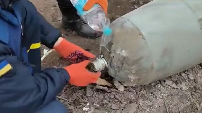 (Видео) Погледнете како Украинците со раце и шише вода деактивираат руска бомба
