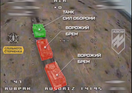 Пилотите на беспилотни летала на 3-та ударна бригада најпрво го гаѓаа водечкото возило БРЕМ. Два дрона ФПВ го погодиле возилото во близина на моторот, а третиот удрил во другото возило. Четвртото беспилотно летало кружеше по сега неподвижните возила, испитувајќи ја штетата.