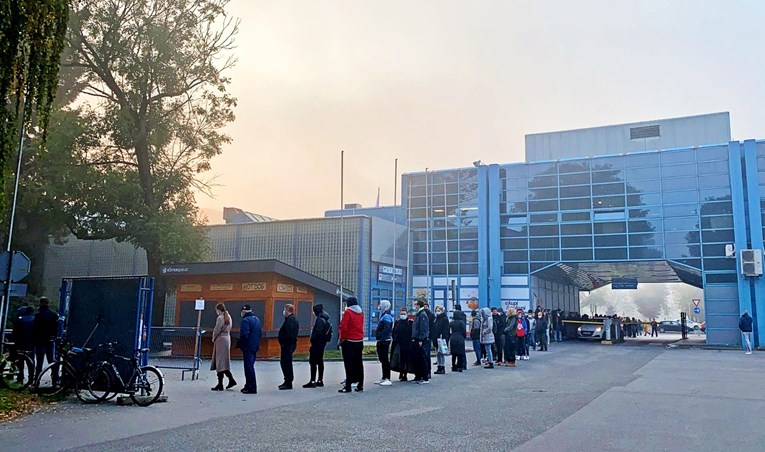 Утрово, пред загрепскиот велесаем има метеж од луѓе, кои чекаат да се вакцинираат со прва, втора или трета доза вакцина против Ковид-19.