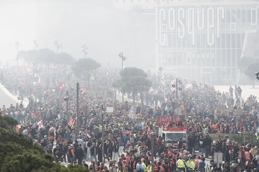 Демонстрантите го блокираа сообраќајот во главниот град на Франција, терминалот на парискиот аеродром, затворени се неколку училишта, ѓубрето се трупа на улиците. Загрозено е и производството на струја поради штрајкот на синдикатот на електраните. Во северниот град Денкерк беа блокирани терминал за гас и складиште за нафта.