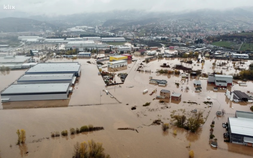 Фоторепортерите на Klix.ba од воздух забележаа како изгледа ситуацијата на терен. Под вода се бројни објекти и приватни автомобили, а спасувачите евакуираат жители и ги носат на сигурно.