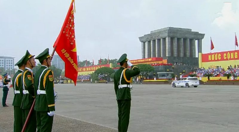 Тенкови, лансери за проектили, амфибиски возила и друга опрема поминаа покрај трибините на плоштадот Ба Дин, каде што револуционерниот лидер прогласи независност од француската колонијална власт на 2 септември 1945 година.