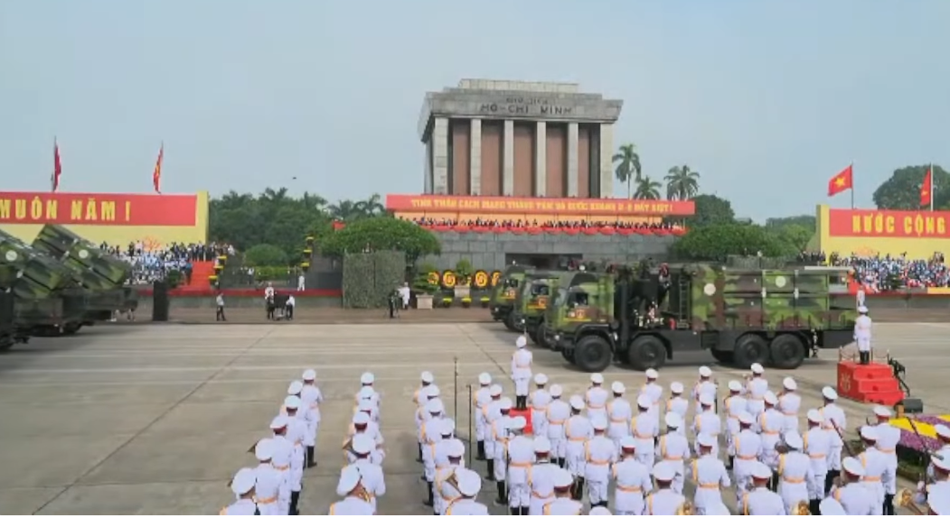 Тенкови, лансери за проектили, амфибиски возила и друга опрема поминаа покрај трибините на плоштадот Ба Дин, каде што револуционерниот лидер прогласи независност од француската колонијална власт на 2 септември 1945 година.