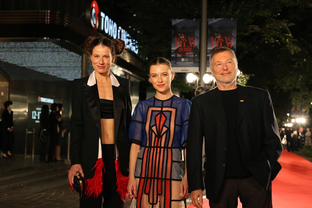 Македонските актерки Ана Стојановска и Сара Климоска блеснаа со модерниот стил на црвениот килим на 35.Меѓународен филмски фестивал во Токио, по повод светската премиера на филмот Кајмак во режија на Милчо Манчевски.