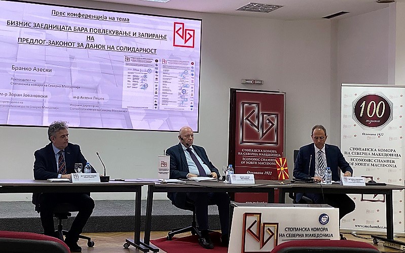 Како што соопштија на прес конференцијата Азески, потпретседателот на Стопанската комора Зоран Јовановски и извршниот директор Антони Пешев, Владата го испочитувала барањето на бизнис секторот и го повлекла Предлог-законот за данок на солидарност од собраниска процедура, но тоа, како што рекоа, не е доволно.