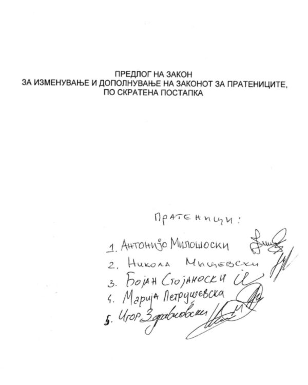 – Ете, ние сме потпишани на овој закон, утре ќе можат да се изјаснат дали го поддржуваат или не. Ако го изгласаат, ако се тие во право, ние петмина повеќе нема да бидеме пратеници. Но, о јас мислам дека и овој пат ќе најдат некаков начин да го заобиколат или повторно ќе треба да ги слушаат оние кои што и во минатиот период ги слушаа, а тоа е ДУИ“, порача Стојаноски.
