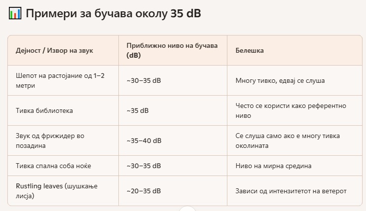 Само за објаснување што значи бучава do 35 dBA: