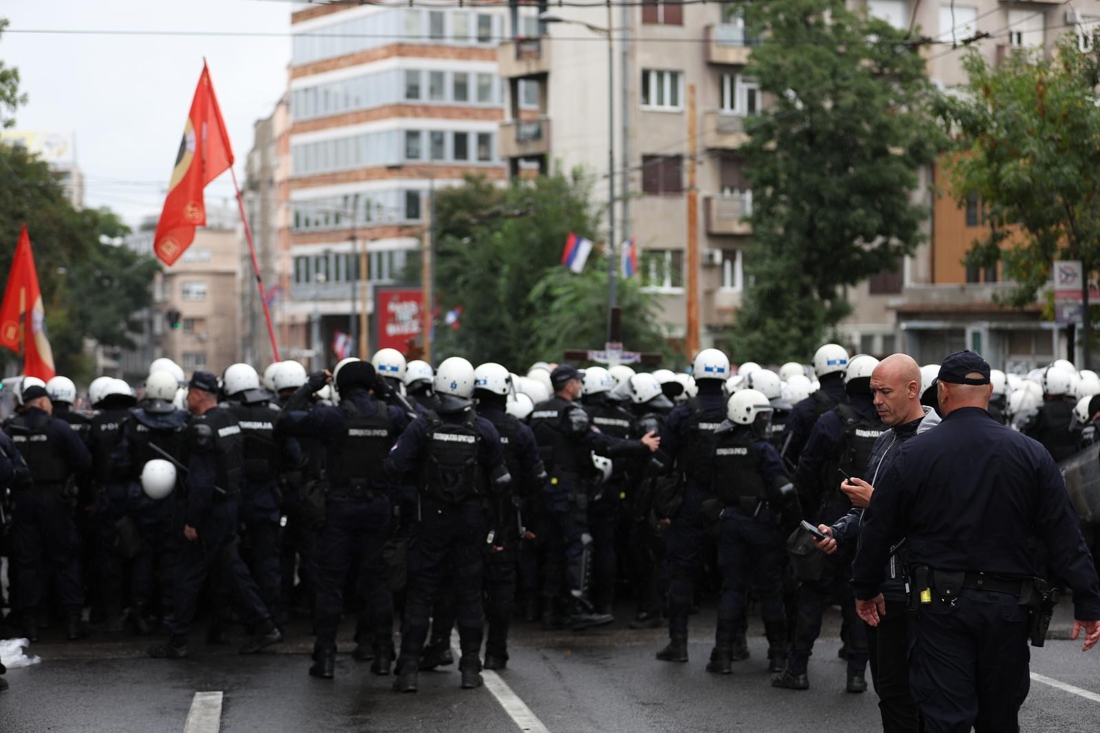 И претходно во Белград имаше судири помеѓу противниците и полицијата, а приведени се десетици лица, меѓу кои и расчинетиот монах Антониј, кој со шише го погодил во стомак снимателот на Н1. Нападот е пријавен во полиција.